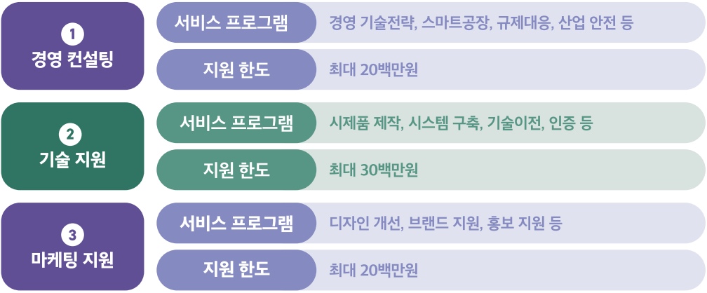 기술과 경영 능력이 열악한 제조업체를 대상으로, 맞춤형 서비스를 바우처 방식으로 제공하여 중소기업의 경쟁력을 강화하는 사업
