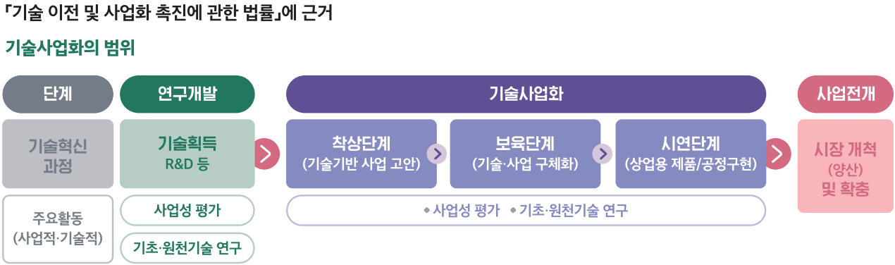 기술사업화는 기술을 활용하여 제품을 개발·생산·판매하거나, 관련 기술을 향상시키는 과정